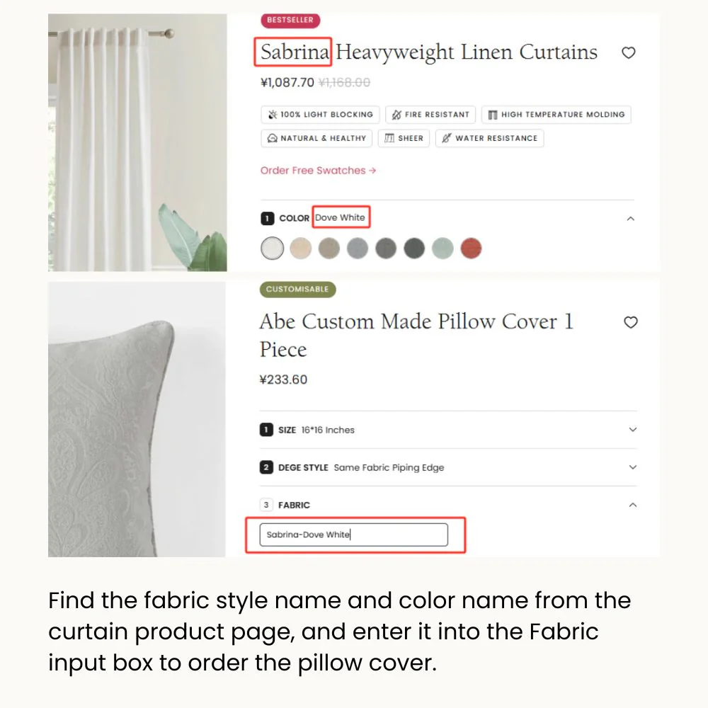 Complete your window treatment set with matching pillowcases! Order coordinating cushion covers in any size and edge style to suit your decor. Whether bolstering pillows for your bed or throw pillows for your sofa, these stylish additions will give any space a polished and finished look.