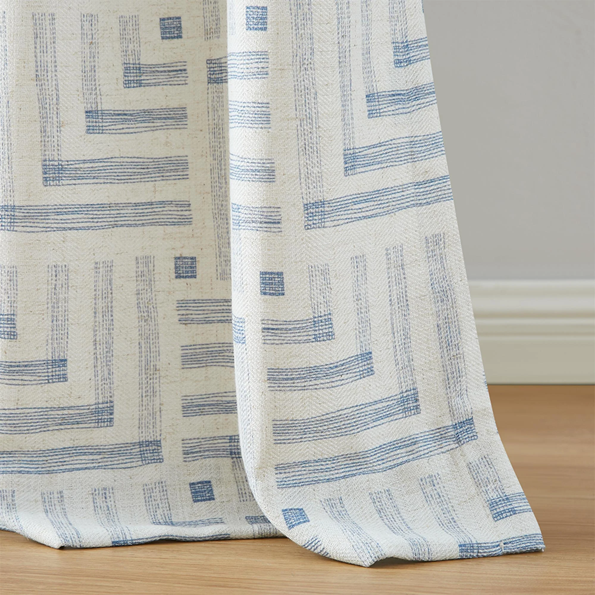 The Auden curtain is truly remarkable. Made of herringbone textured fabric, it features digital prints of Bohemian geometric lines, available in blue and black. Its size is customizable. With a 40%-50% light-shading rate that can be improved with lining fabric, Auden combines elegance and design, fitting perfectly for living and dining rooms.