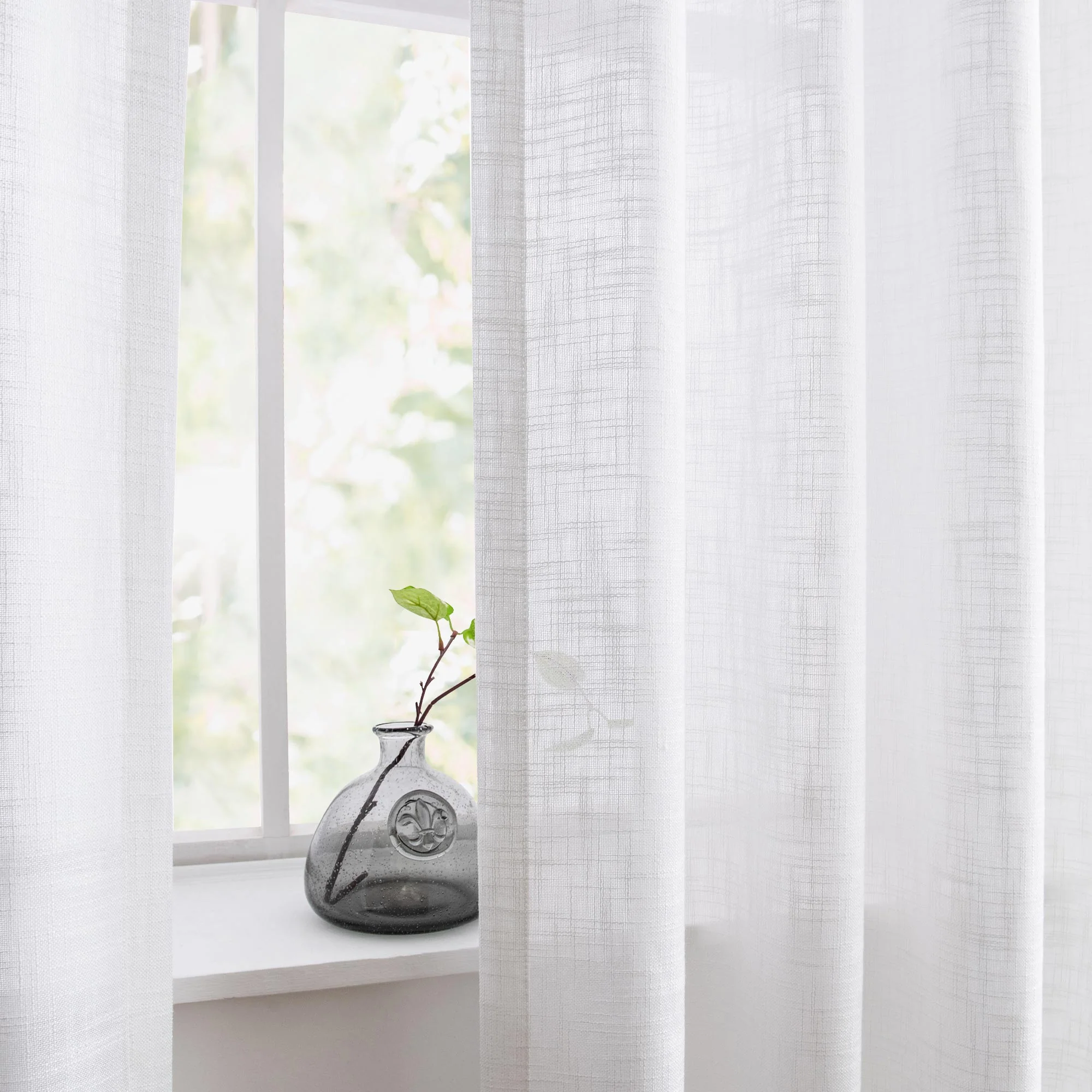 Styled with curated synthetic fabric, our Flora Linen Semi Sheer Curtains wrap up with a linen texture. The crisscross pattern adds a splash of cheer your room needs. Design curtains that you and your space will love without breaking the bank.